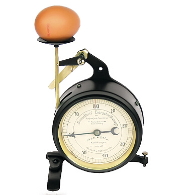 За эти годы «яичных» весов появилось очень много. Особенно красивы весы компании Jiffy Way (в виде курицы), появившиеся на рынке менее 20 лет назад. Но дело не в одной лишь красоте – весы позволяют с точностью определить не только вес дюжины яиц, но и массу каждого из них, и не только в унциях, но и в граммах. А разноцветная шкала на «теле» курицы поделена на сектора – каждый соответствует той или иной категории. Тут уж точно не ошибешься!