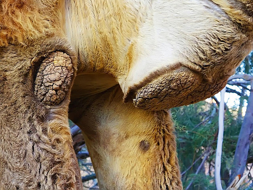 Что делает верблюдов «кораблями пустыни»? Благодаря защитным механизмам им не страшны ни горячие пески, ни палящее солнце, ни отсутствие воды. Во-первых, на груди, запястьях, локтях и коленях верблюда есть грубые мозоли – он может подолгу лежать на раскаленной земле, не боясь получить ожоги. Нижняя сторона стопы – одна сплошная мозоль, поэтому верблюды могут ходить как по мелким камням, так и по песку или снегу. Отсюда и название подотряда – мозоленогие.