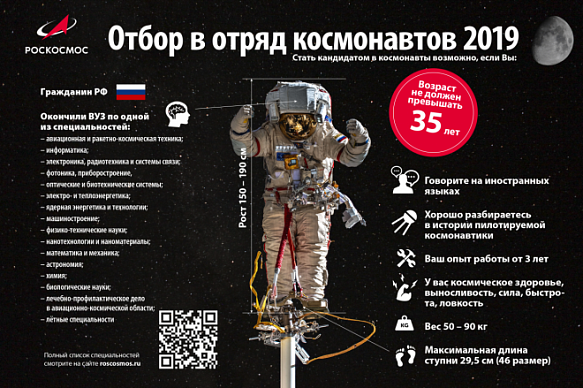 Четырех человек, соответствующих довольно жесткому списку требований, отберут в отряд космонавтов Роскосмоса к 2020 году. Кандидатам нужно знать иностранные языки, обладать высшим инженерным образованием и уметь подтягиваться минимум 12 раз.