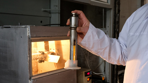 Кварцевый лабораторный автоклав в стальном кожухе, используемый для изучения кинетики растворения порошков. Фото: пресс-служба ФИЦ КНЦ СО РАН.