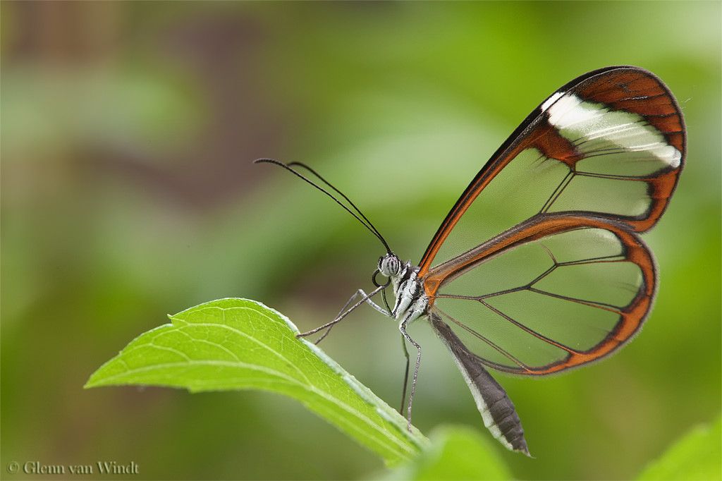 Размах крыльев от 5,5 до 6 см. Ткань между жилками на крыльях у бабочки прозрачна, потому что лишена цветных чешуек. Непрозрачные границы крыльев имеют тёмно-коричневый цвет, иногда оловянного с красным или рыжим отблеском, а само тело — также тёмного цвета.
