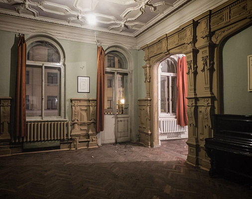 Стандартная коммунальная кухня, на первый взгляд. Но мозг слегка напрягается: ПВХ плитка, печь и нестандартная геометрия кухни будто искажают пространство. А ещё здесь слишком пусто для жилой коммуналки, но это легко объяснить. Дело в том, что в квартире последние годы живёт только одна бабушка. Она — бывшая соседка Бродского, который жил здесь с 1955 до 1972 года (до своего отъезда из СССР). Да, это дом Мурузи, и здесь находятся те самые "полторы комнаты". Вот уже несколько лет идут попытки официально открыть музей поэта, но всё упирается в соседку, которая живёт в квартире всю жизнь и уезжать наотрез отказывается. И её можно понять.