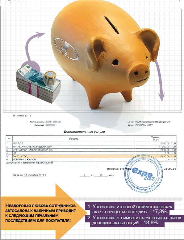 ДАЛЬШЕ – БОЛЬШЕ. После подписания многострадального кредитного договора, который по ходу дела подорожал на 2,5 процента годовых, меня пригласили пройти в кассу для оплаты дополнительного оборудования, где я торжественно расстался с 30 тысячами рублей. Но этого «группе лиц» показалось мало, и мне было сделано невероятное с точки зрения «гомо сапиенса» (ключевое слово – «сапиенс») предложение.
