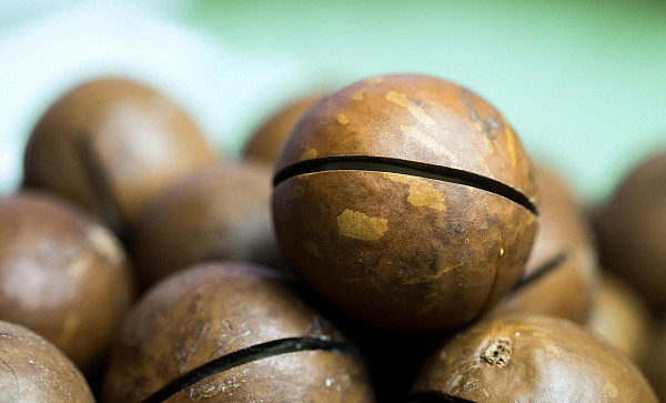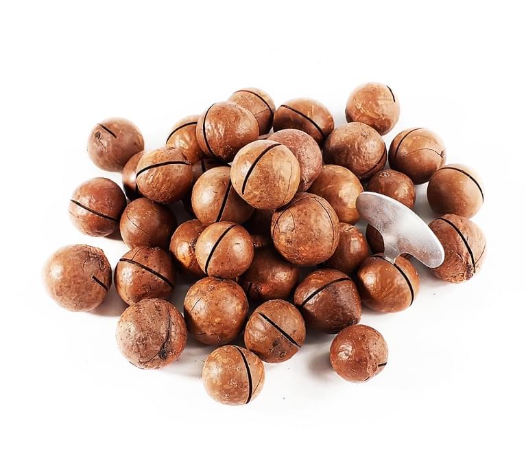 Орехи макадамии идеальной круглой формы, всего 1,5–2 см в диаметре, но с очень твердой оболочкой. Широко распространен миф о том, что орех останется целым, даже если по нему проехать на машине, но это, к сожалению, неправда – скорлупа все же разломится. На фабриках ее для удобства покупателей надкалывают механическими вальцами, аккуратно, чтобы сохранить сердцевину. А в быту используют специальный ключ для открытия ореха.
