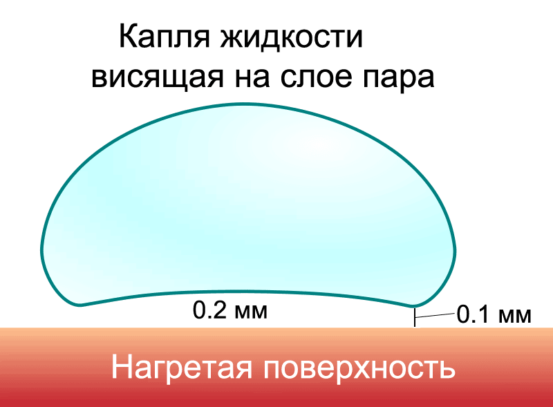 Пар, который находится под каплей, заставляет воду парить и терять сцепление со сковородой. Это то, что происходит в самом начале. Французских исследователей заинтересовало дальнейшее: что творится, когда большая часть капли испарилась — прямо перед самым её исчезновением?