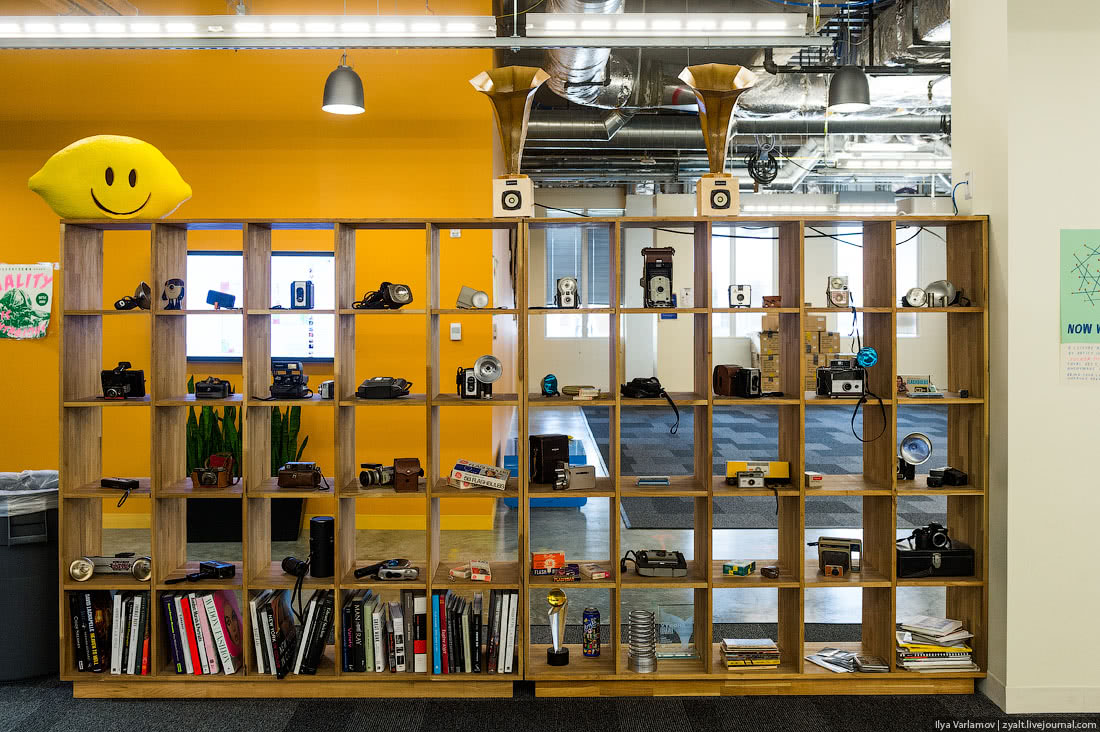 В одном из зданий сидят сотрудники Инстаграма. Никаких вывесок нет, найти их можно по стеллажам со старыми камерами