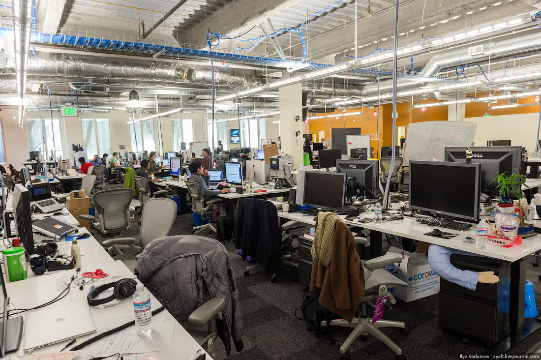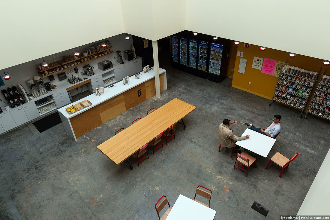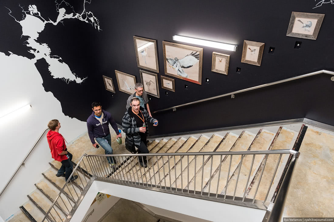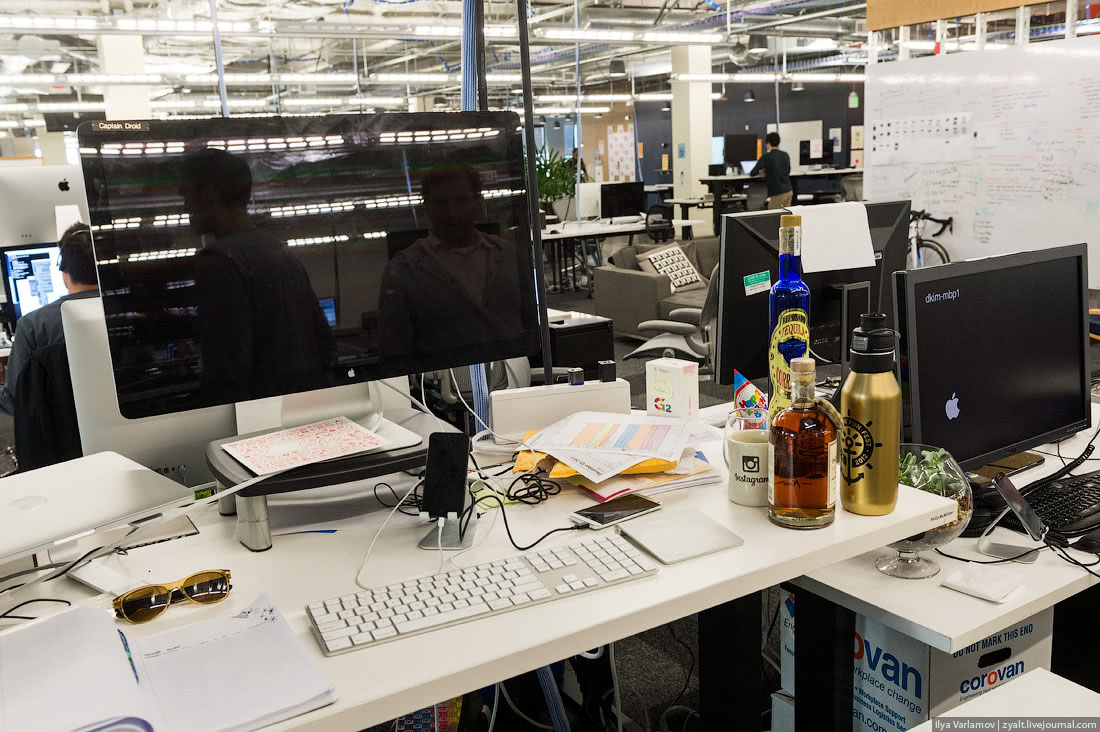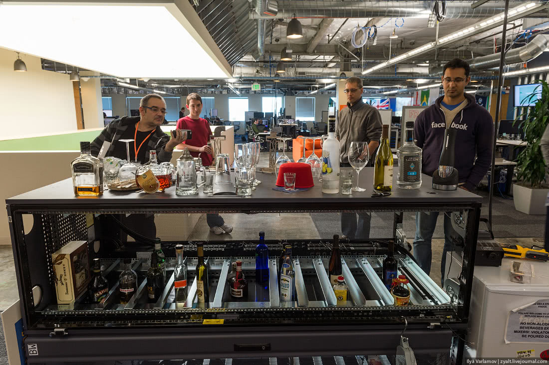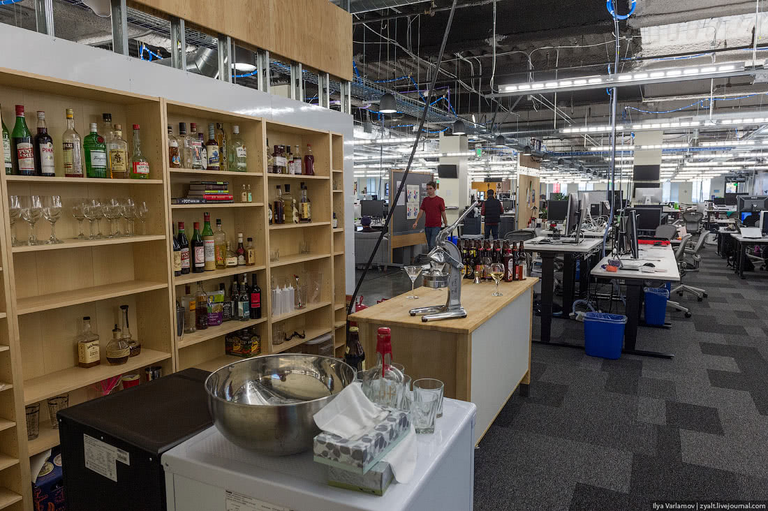 Чтобы в бар не ходить, можно взять бутылочку и с собой на рабочее место. Еще меня удивило, что сотрудники спокойно оставляют свои телефоны и другие ценные вещи на столах. Говорят, за все время не было ни единого случая кражи. Это при том, что во всем офисе я не увидел ни одного охранника, а попасть внутрь не составляет особого труда. Удивительное место )