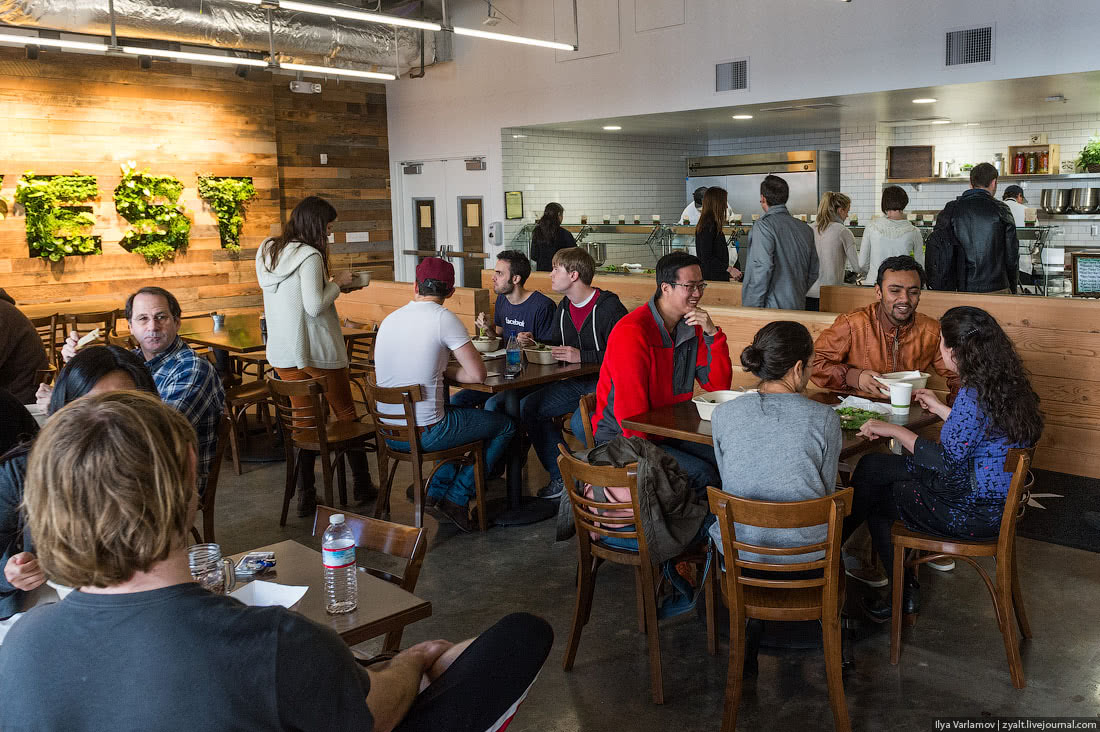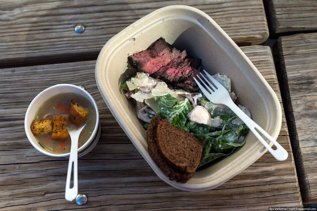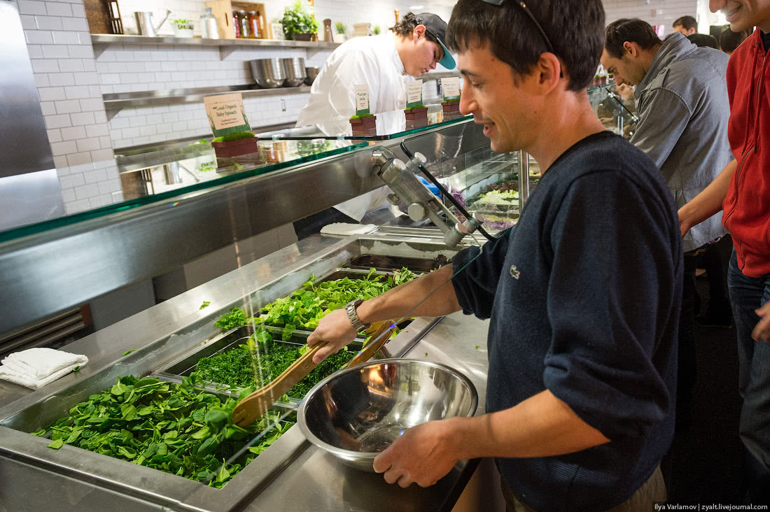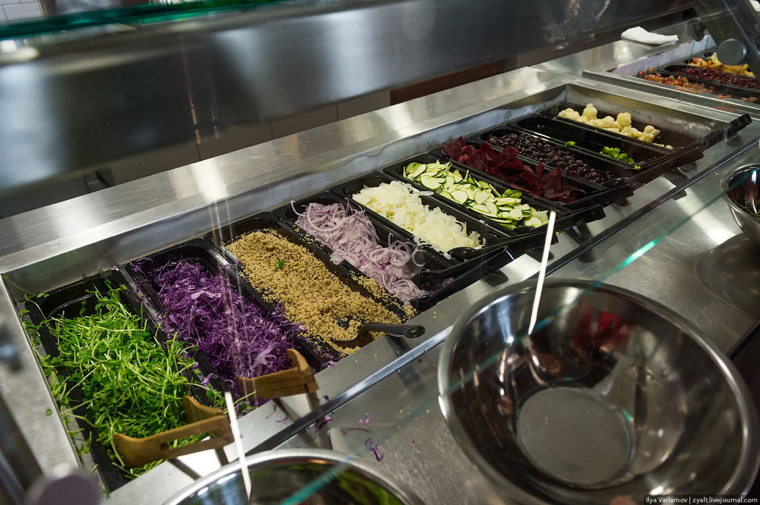 Пора перекусить. Как я уже сказал, еда здесь на любой вкус. Есть и мексиканский ресторан, и бургеры, а есть салат-бар. Здоровое питание нынче в моде. Набираешь кучу листьев в миску…