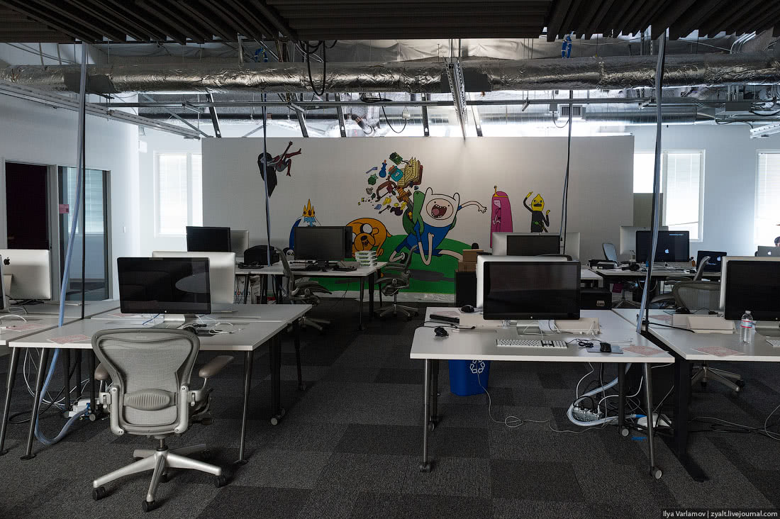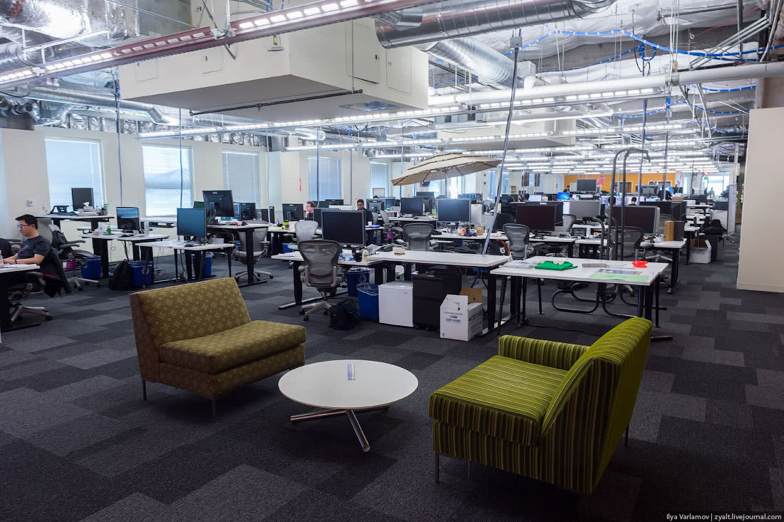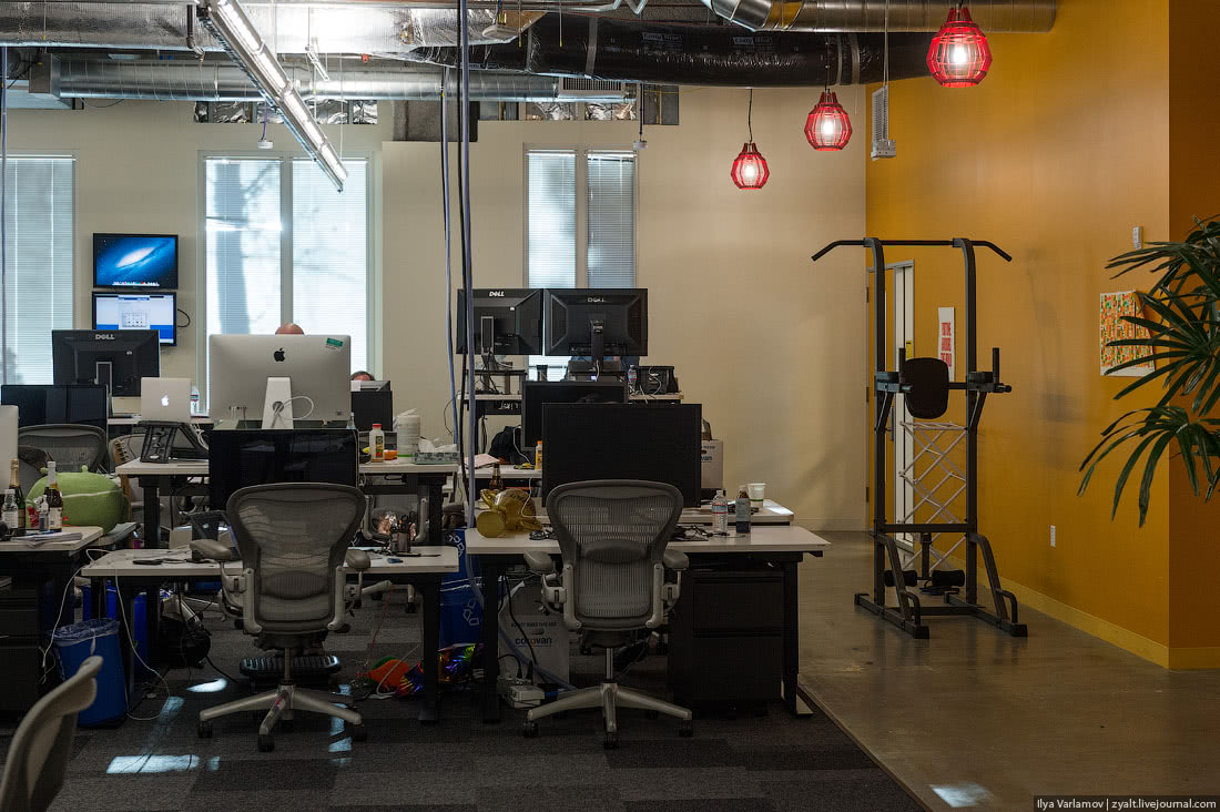 Сотрудники сами оформляют свои рабочие места, поэтому здесь можно встретить все от тренажеров до огромных плюшевых игрушек.