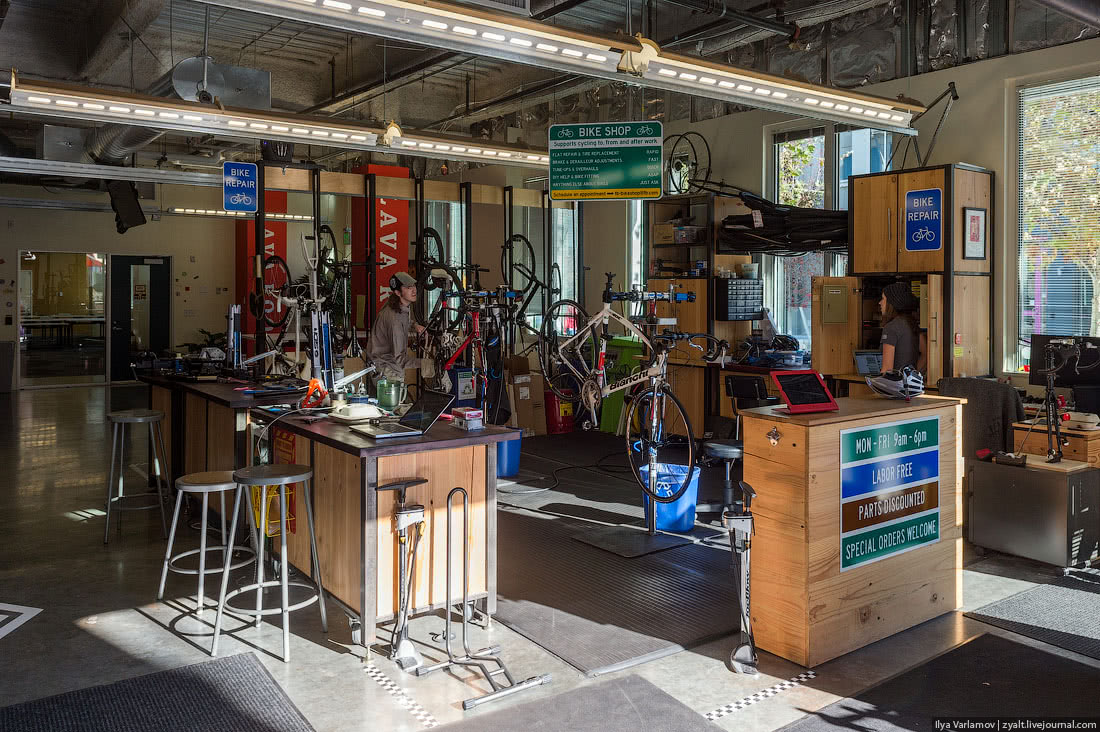 В городе Фейсбук есть и веломастерская для жителей. Естественно, все бесплатно
