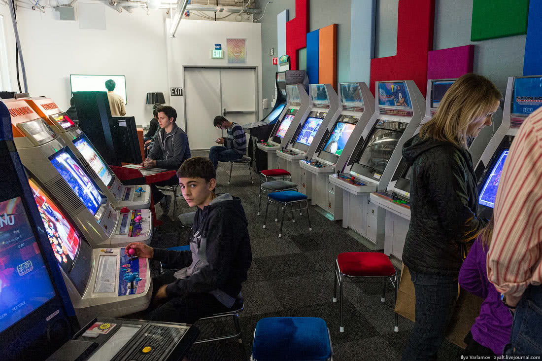 Конечно на территории Фейсбука есть все для отдыха. Например, зал игровых автоматов