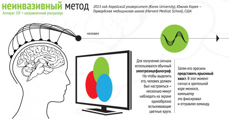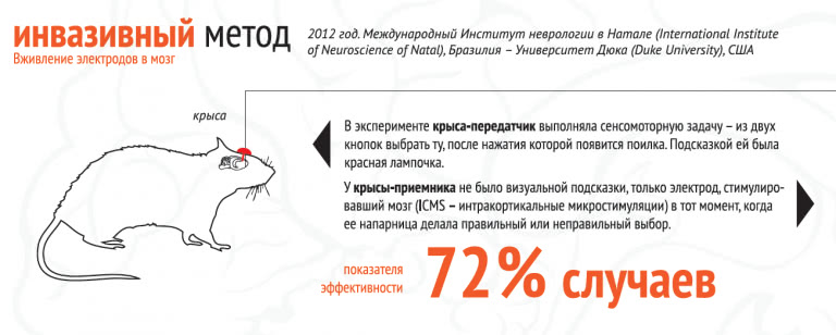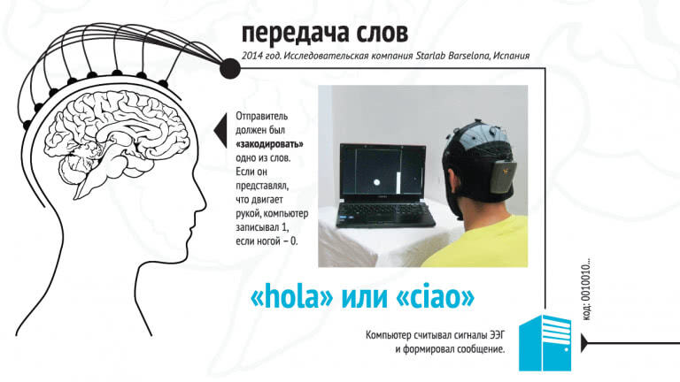 Интерфейс «мозг-мозг» (BTBI, brain-to-brain interface) - по сути, частный случай нейрокомпьютерного интерфейса. Ведь посредником между двумя живыми существами выступает машина. поэтому на уровне собственно передачи никакой проблемы нет - отправить информацию можно хоть на Марс. Проблема в том, чтобы уловить нужный сигнал в одном мозге и точно его «доставить» в другой, несмотря на «шум» прочих сигналов, ежесекундно подаваемых нейронами. Ученые решают эту проблему разными путями.