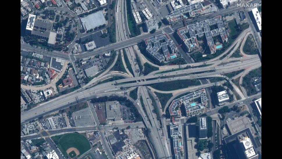 Автомобильная развязка в Лос-Анджелесе, США, 22 марта 2020Фото: 2020 Maxar Technologies
