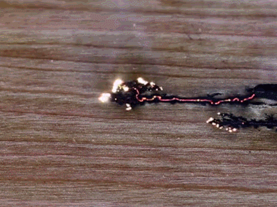 Если подать мощный заряд в стекло, получается нечто похожее на лазерную 3D гравировку, только с намного большей разрешающей способностью. То, что вы видите, называется "Фигуры Лихтенберга" — узоры, образующиеся в результате высоковольтных разрядов. Иначе - так распределяются искровые каналы, образующиеся на поверхности твёрдого диэлектрика при скользящем искровом разряде. Впервые наблюдались немецким учёнымГ. К. Лих