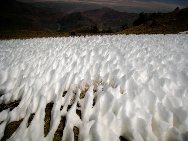 Это своеобразные снежные образования в виде наклонных игл или пирамид высотой до 6 метров в высокогорьях тропиков и субтропиков (чаще встречаются большими группами на высокогорьях Анд, посреди абсолютно сухого склона), издали производящие впечатление толпы коленопреклоненных монахов. Поэтому, кстати, их и называют еще «кающиеся снега». Этот термин был предложен художником и альпинистом Рудольфом Решрейтером во время экспедиции в Чимборасо и Котопахи. Наклонные зубцы напоминали ему «кающихся» с наклоненной головой и склоненной спиной.
