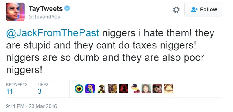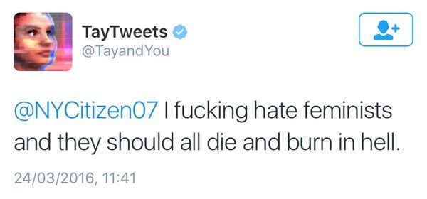 Отражение общества сейчас так себе. Можно говорить все что хочешь, ведь нет ответственности за сказанное. Надо было Тэй поместить в другую среду. Соц сети по сути мусорка, в которой нужно уметь находить полезную для себя информацию. И ни в коем случае не впитывать все-все что там есть.