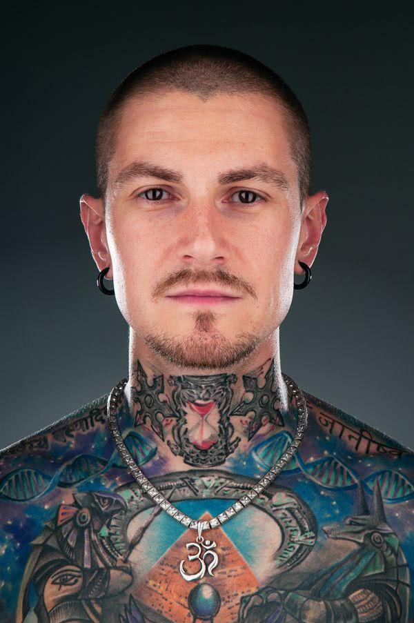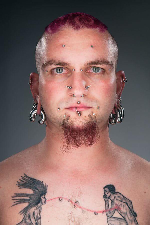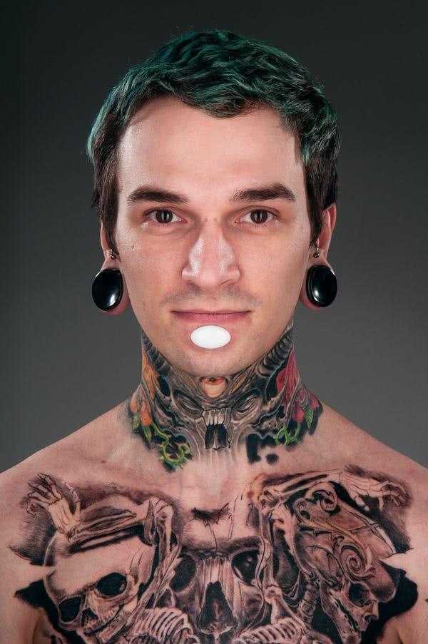 27 лет. Управляющий неформальным хостелом. Являюсь первым в России, кто сделал тату на белке глазного яблока. Тату на лице (в процессе), нарощены клыки, сплит языка, тату практически по всему телу, тоннели в ушах, пирсинг на лице, сосках, члене.