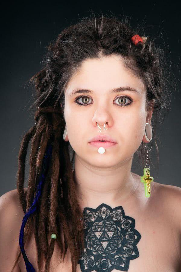 22 года. Свободный художник. Увлекаюсь татуировкой, плету дреды. Впервые дреды захотела заплести в 10 лет (смешно, но меня вдохновил Децл). У меня 6 проколов, тоннели на 30мм, 4 татуировки, тоннель в губе, немного раздвоенный кончик языка