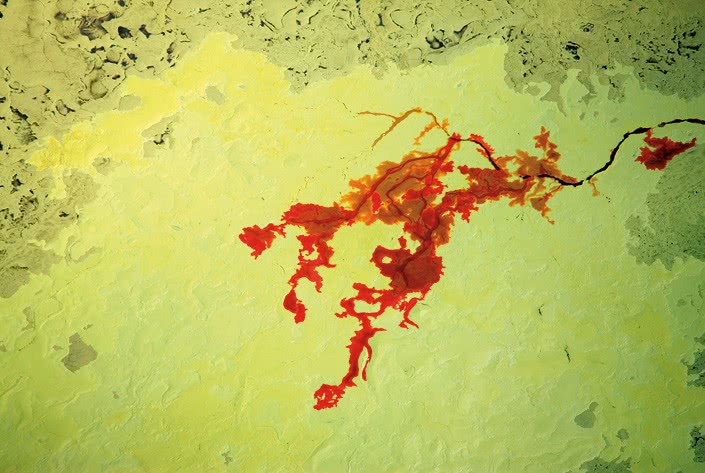 Содержимое цистерны, разлившейся в процессе добычи нефти из нефтеносных песков. Форт Мак-Мюррей, Канада, 2009 год.