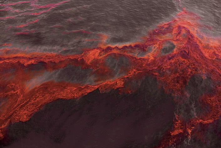 Разлив нефти после взрыва на платформе Deepwater Horizon. Мексиканский залив, США, 2010 год.
