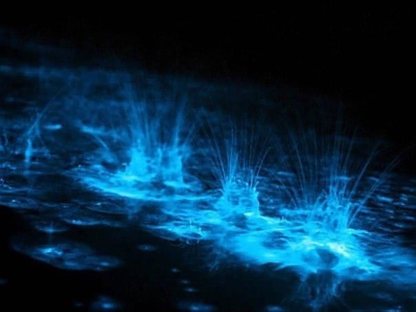 Днем озеро, населенное такими водорослями, не отличается от других озер, а ночью оно начинает светиться таинственным голубым светом. Кажется, что озеро подсвечивается снизу неоновыми лампами, наполненными гелием. В результате химических реакций жизнедеятельности живых организмов высвобождается большое количество свободной энергии, выделяемой в форме света, наблюдаемого ночью, когда дневной свет не мешает его видеть.