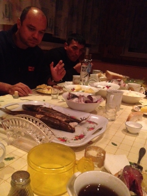 Ночной ужин на Байкале.. Ну как без водки и омуля..)