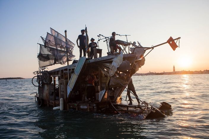 Плоты просвещения ... На плотах из переработанного мусора путешествует по Европе группа американских художников и артистов. Они не просто путешествуют, а дарят людям праздник… В репертуаре: драматические, музыкальные и кукольные представления.