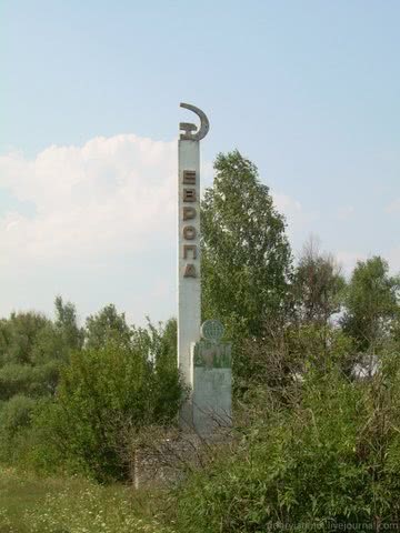 В Учалинском районе Башкирии, на автодороге Учалы-Белорецк у деревни Ново-Байрамгулово установлены два обелиска «Европа и «Азия» по обе стороны автомобильного моста через реку Урал (которого сейчас нет). Эти обелиски расположены метров на 300 южнее новых знаков там, где раньше проходила дорога. Они были построены в 1968 году по эскизу художника Д. М. Адигамова и архитектора У. Ф. Зайникеева.