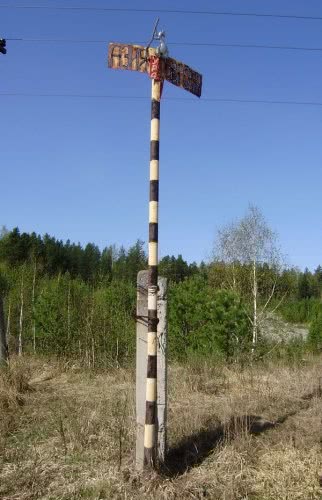 Знак установлен на перроне о. п. Хребет Уральский Горнозаводской ж. д. в 2003 г. в честь 125-летия Свердловской железной дороги.