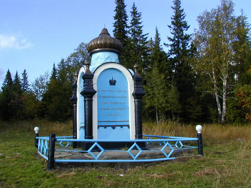 Памятный знак установлен на перевале у горы Кедровка на небольшой поляне на 27-м километре дороги. Выполен он в виде часовни из чугунного литья. В гражданскую войну обелиск был разрушен, часть деталей утеряна. В 1970-х годах силами туристов Нижне-Салдинского завода обелиск был восстановлен.