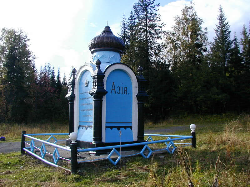 Обелиск «Европа-Азия» на горе Медвежка у станции Мурзинка