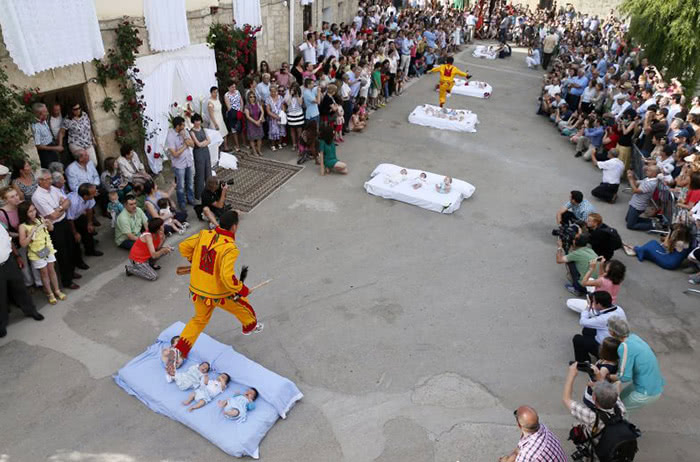 В Испании в деревушке Кастильо де Мурсия взрослые мужчины, одетые в костюм дьявола, с 1620 года ежегодно перепрыгивают через уложенных на их пути недавно родившихся младенцев. Все это делается ради невинной души.