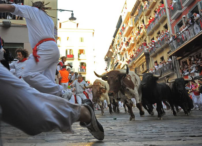 Испанская традиция, связанная с риском быть затоптанным или раненым быками во время их пробега по улицам города, своими корнями уходит в древность. В 13 веке бои и состязания с быками были привычным делом. Сегодня традиция почти не изменилась: каждый июль тысячи мужчин готовы пробежать 800 метровую дистанцию перед гонящимися за ними разъяренными быками.