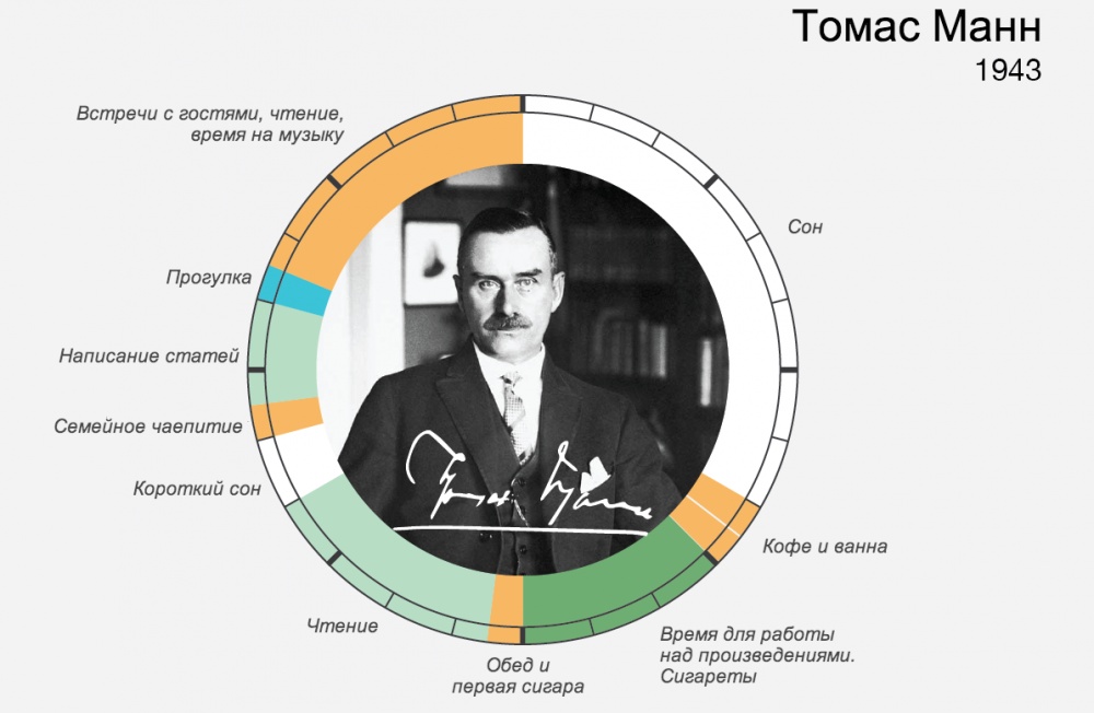 Режим дня некоторых великих людей на основании их мемуаров. Интересная инфографика от дизайнеров Info we trust.