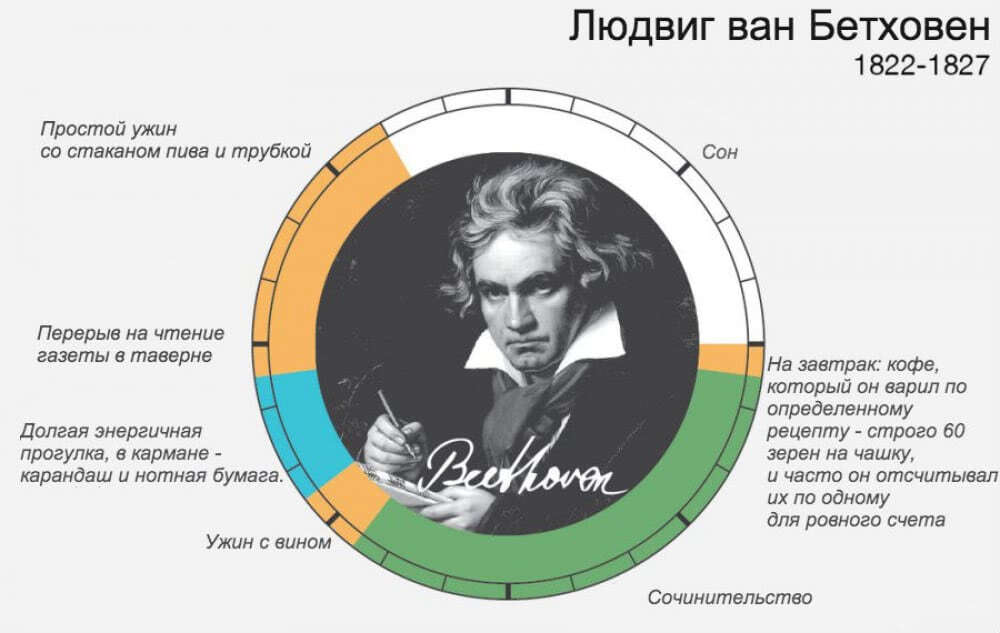 Режим дня некоторых великих людей на основании их мемуаров. Интересная инфографика от дизайнеров Info we trust