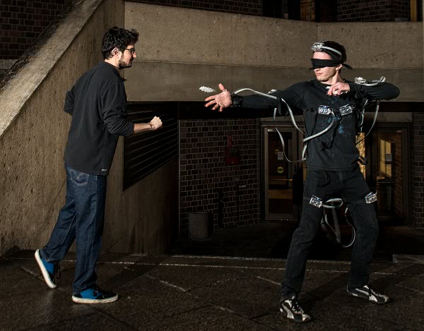 Виктор Матеевици из Иллинойсского университета (США) создал костюм, оснащенный небольшими модулями, которые отправляют ультразвуковой сигнал и принимают его отражение от объектов. Если нечто приближается, модули увеличивают давление на тело. Таких мод