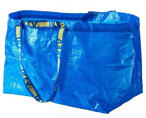 Кстати, у однодолларовой сумки из IKEA тоже есть имя – Frakta. Своей яркой внешностью и популярностью она обязана «родителям» – Марианне и Кнуту Хагберг. Они пришли к выводу, что большая сумка из плотного и непромокаемого синтетического полипропилена станет универсальным помощником в любых хозяйственных делах: от сбора мусора до переезда.