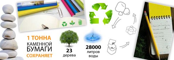 Получился в итоге очень прочный, водонепроницаемый, устойчивый на разрыв материал, который не требует воды, кислот, отбеливания и древесины для изготовления, что позволяет уменьшить вырубку лесов. Каменная бумага пригодна для переработки и утилизации. Не разлагается микроорганизмами, однако в природе быстро раскладывается на базовые компоненты.