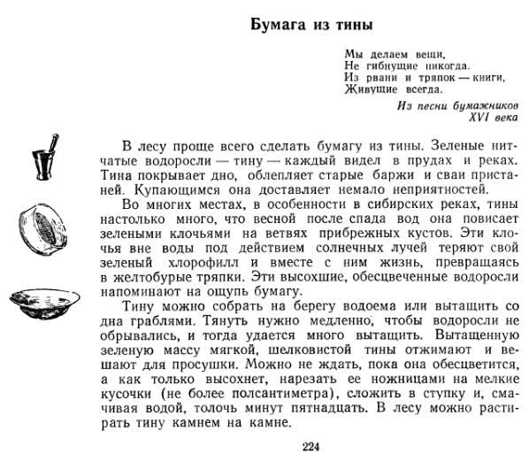 Как только масса закипит, кастрюлю сдвигают с огня, хорошо размешивают и вливают 2% раствор серной кислоты. После этого массу промывают водой и, прибавив несколько капель нашатырного спирта, кладут в сито, а дальше делают то же, что и при обработке зеленой тины для получения небеленой бумаги. Бумага получится молочного цвета.