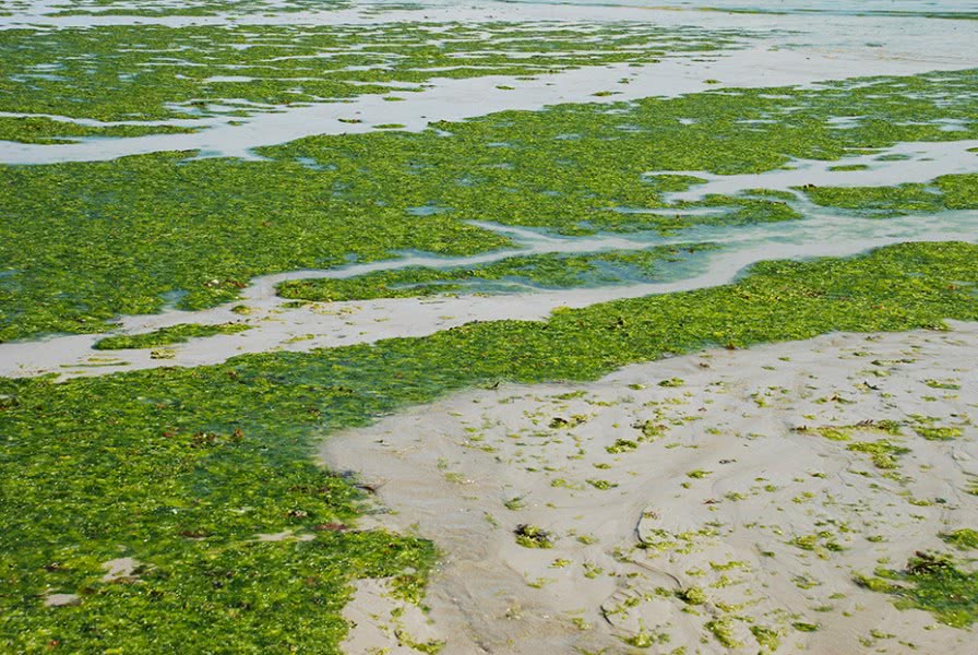 А вот так на Западе Франции идет борьба с загрязнением водоемов. Каждое лето прибрежные воды заполняют токсичные зеленые водоросли. Водные растения размером с большой лист салата на жарком солнце начинают гнить, образуя плотную массу, которая не пропускает воздух. В результате такого брожения под листьями, плавающими на поверхности воды, образуется сероводород, и если человек наступит на такой «ковер», газ вырывается наружу и при большой концентрации может привести к потере сознания.