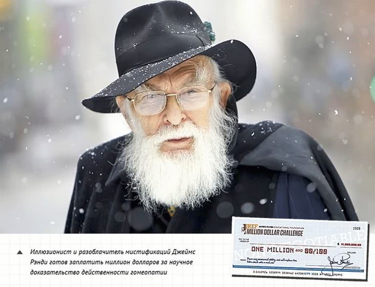 Закончить разговор хочется упоминанием известной организации, борющейся со всякого рода псевдонаучными идеями. Учрежденный бывшим фокусником Джеймсом Ренди (James Randi) образовательный фонд 17 лет назад объявил премию в миллион долларов тому, кто сможет продемонстрировать какие-либо экстрасенсорные, сверхъестественные или паранормальные способности в условиях корректного эксперимента. В списке такого рода тестов есть и гомеопатия. Миллион получит тот, кто сумеет найти десяток гомеопатических лекарств среди двух десятков похожих склянок, то есть отличить чистую воду от высоко потенцированного препарата. Пока выиграть премию никому не удалось, а гомеопаты, похоже, и не пытались это сделать. Зачем им это, когда метод и так работает, а клиентов хватает?