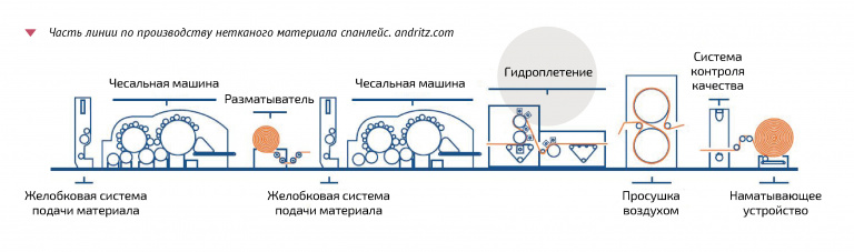 Есть и несколько других способов получения нетканых материалов из тех же сырьевых компонентов. Например, airlaid похож на спанлейс, но роль водяных струй в нем выполняют потоки воздуха. Используют и так называемое кардочесание, или drylaid, при котором волокна после чесальной машины укладываются в форму. Гидравлический способ позаимствован из бумажной индустрии – волокна перемешиваются в воде, после чего эта «каша» просушивается в форме.