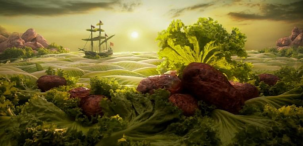 Британский фотограф Карл Уорнер создает фотокартины из продуктов питания! И как же аппетитно выглядят эти домики из пармезана, деревья из брокколи и море из капустных листьев……