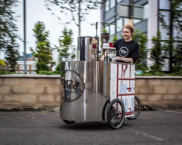 Velopresso придуман студентами Лондонского королевского колледжа искусств. Этот обаятельный объект, который быстро приготовит кофе, функционирует всего лишь путем нажатия на педали. Пяти секунд на трехколесном ))) велосипеде достаточно, чтобы смолоть двойную порцию ароматных зерен. В это время печь нагревает воду и «готовит» пар, питающий эспрессо-машину.