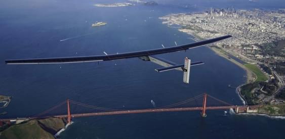 Самолет на солнечных батареях Solar Impulse 2 приземлился в Моунтейн Вью, недалеко от Сан Франциско, преодолев самый длинный и самый сложный отрезок кругосветного путешествия от Гавайских островов до Калифорнии. Летательный аппарат, размах крыльев которого больше чем у Boeing 747, парит со скоростью 45 километров в час и может летать в два раза быстрее при благоприятных погодных условиях. Семнадцать тысяч солнечных батарей покрывают крылья самолета, ночью используется энергия, накопленная в аккумуляторах.