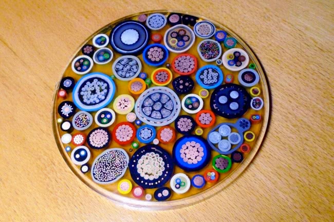 а) Лакричные сладости в разрезеб) Кабели и провода в разрезев) Картина, созданная с помощью грибков плесени и масляных красок, в чашке Петри. Работа американской художницы Клари Рейс (Klari Reis)г) Искусство эбру - рисование на воде.