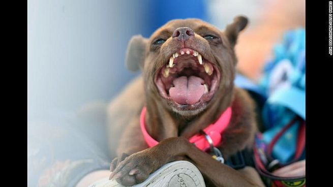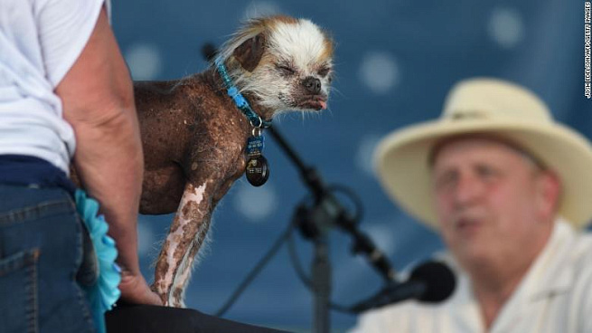 Победителем признали английского бульдога по кличке Жа-Жа. Ее забрали из приюта в Миссури в 2013 году и назвали в честь венгерской актрисы Жа Жа Габор. Сейчас Жа-Жа девять лет, из-за деформации нижней челюсти у нее торчат зубы и свисает длинный язык. Хозяйка собаки Меган Брайнард получила 1,5 тыс. долларов за победу питомца. Она уверена, что победа досталась ей, потому что во время соревнования по поеданию корма «она просто все время чихала и пускала на еду слюни». Всего в конкурсе участвовало 15 собак.