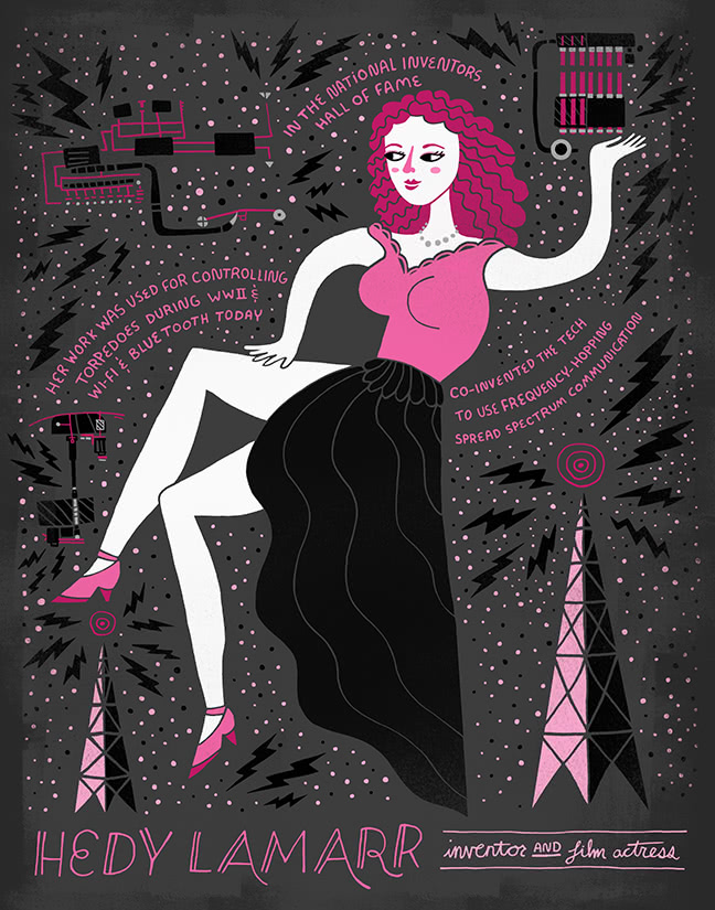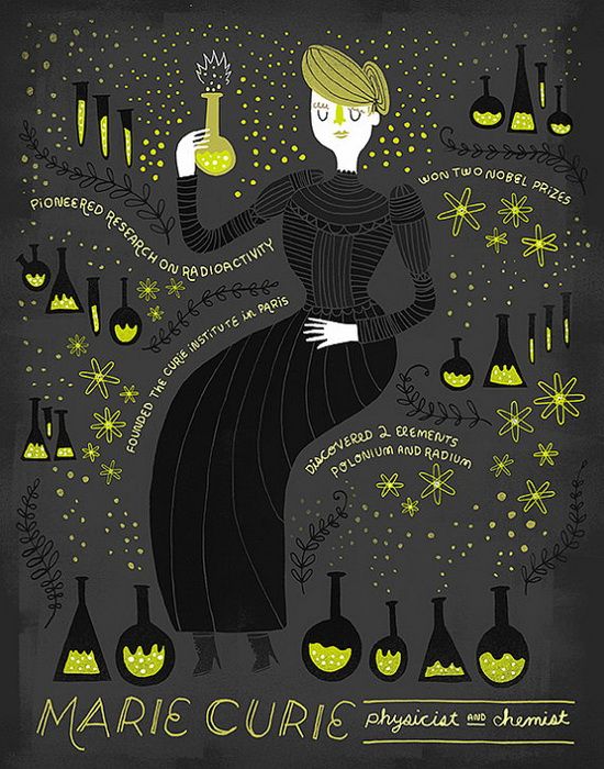 Одна из ее работ – серия постеров «Женщины в науке». Посвящается дамам, которые продвигали науку вперед. «Я хотела отметить достижения этих женщин, и надеюсь вдохновить современных девушек, пробудить их любопытство к миру, чтобы они задавали вопросы и стремились узнавать ответы», - говорит Рейчел.