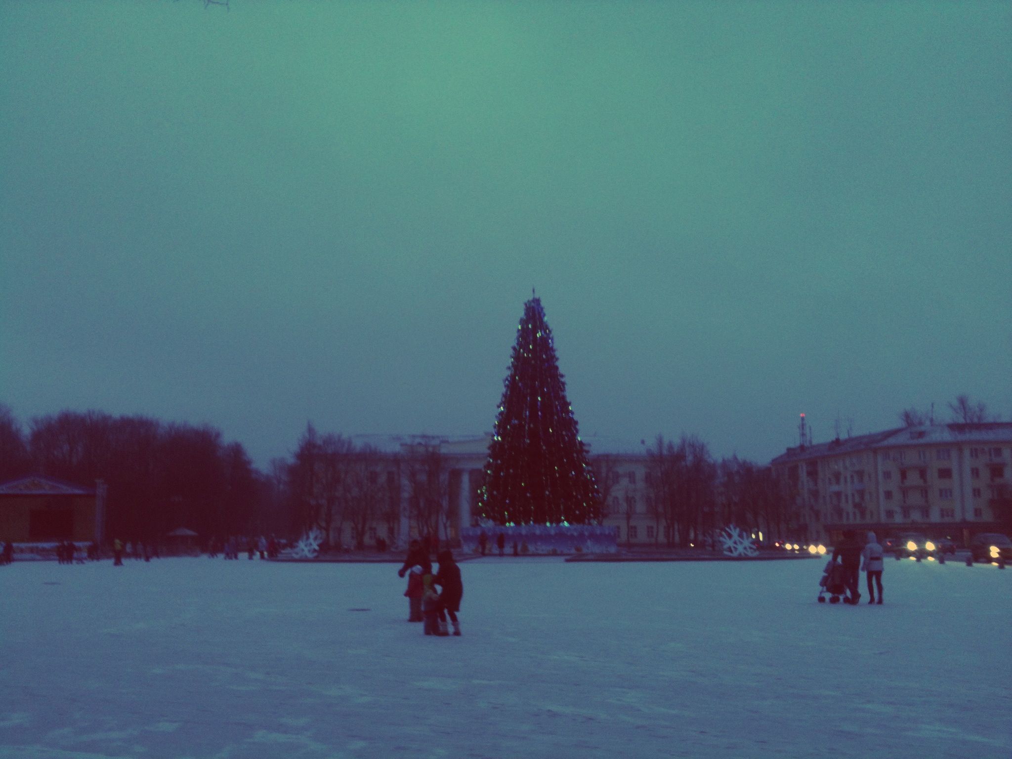 Но как только стемнело, началась сказка))) Елка на центральной площади))) И вот собрались мы уезжать, наконец выпал снег!