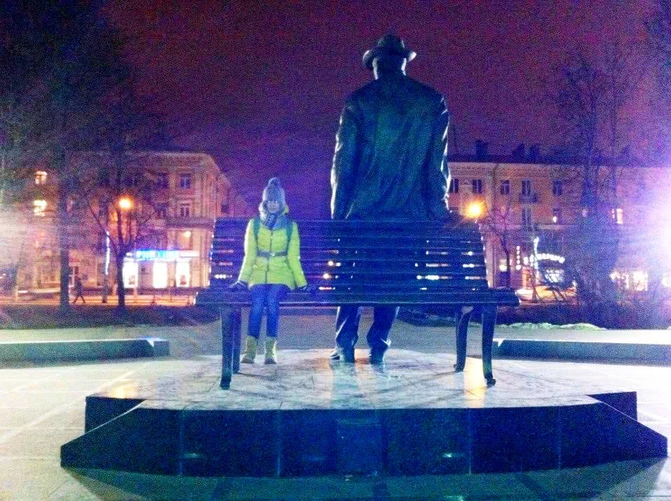 А тут я присела на гигантскую скамью. Это памятник Рахманинову.